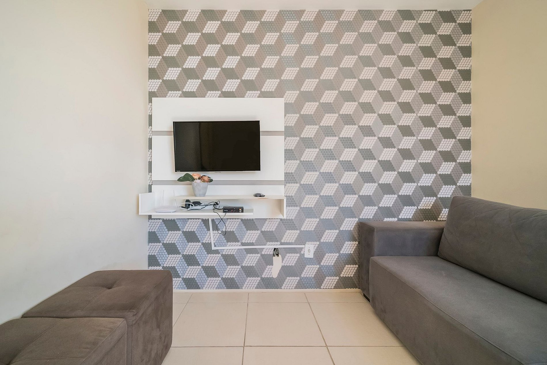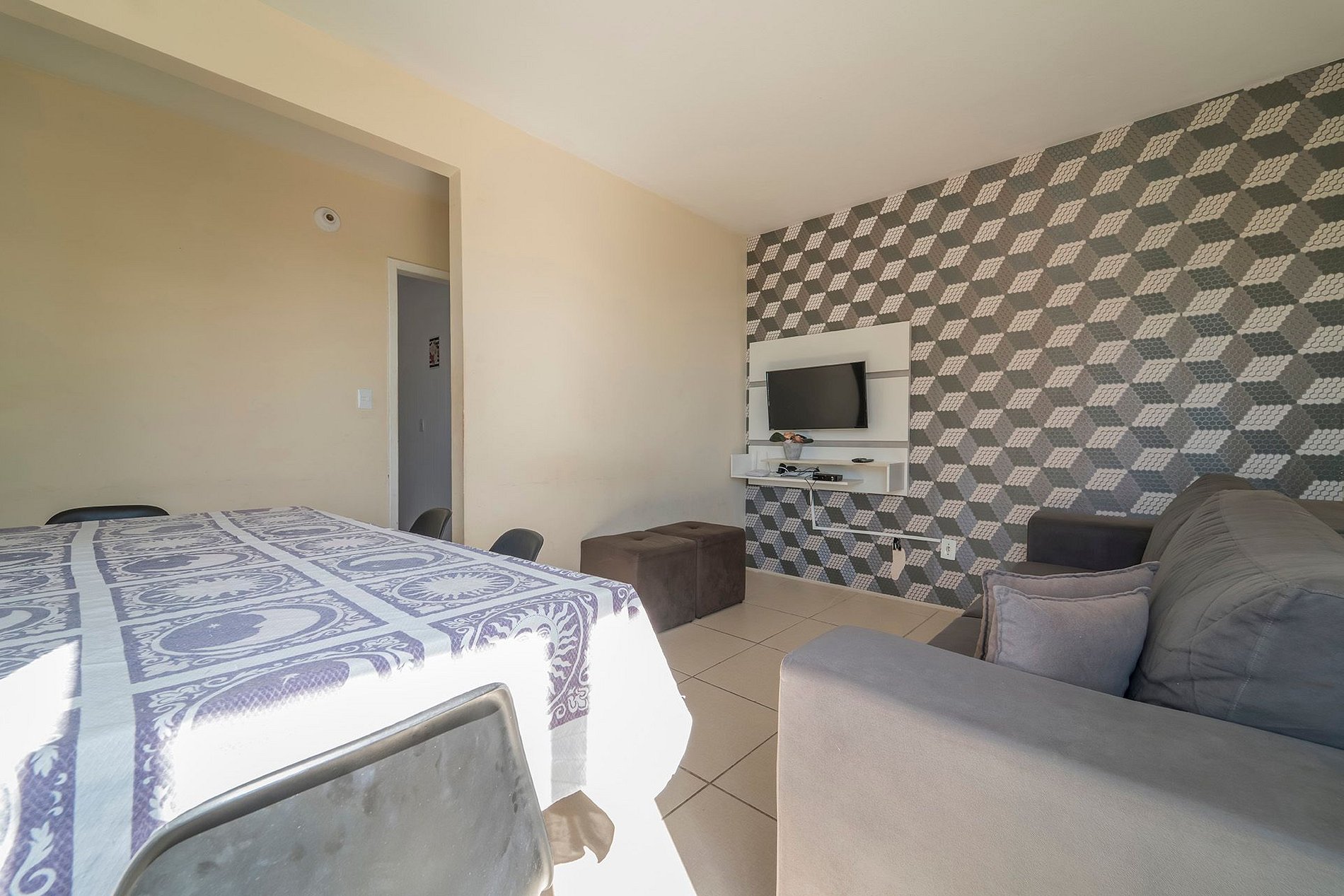 O apartamento tem capacidade para até 06 pessoas em 02 dormitórios (incluindo crianças de qualquer idade), com cozinha, sala, área de serviço, churrasqueira, sacada e garagem.