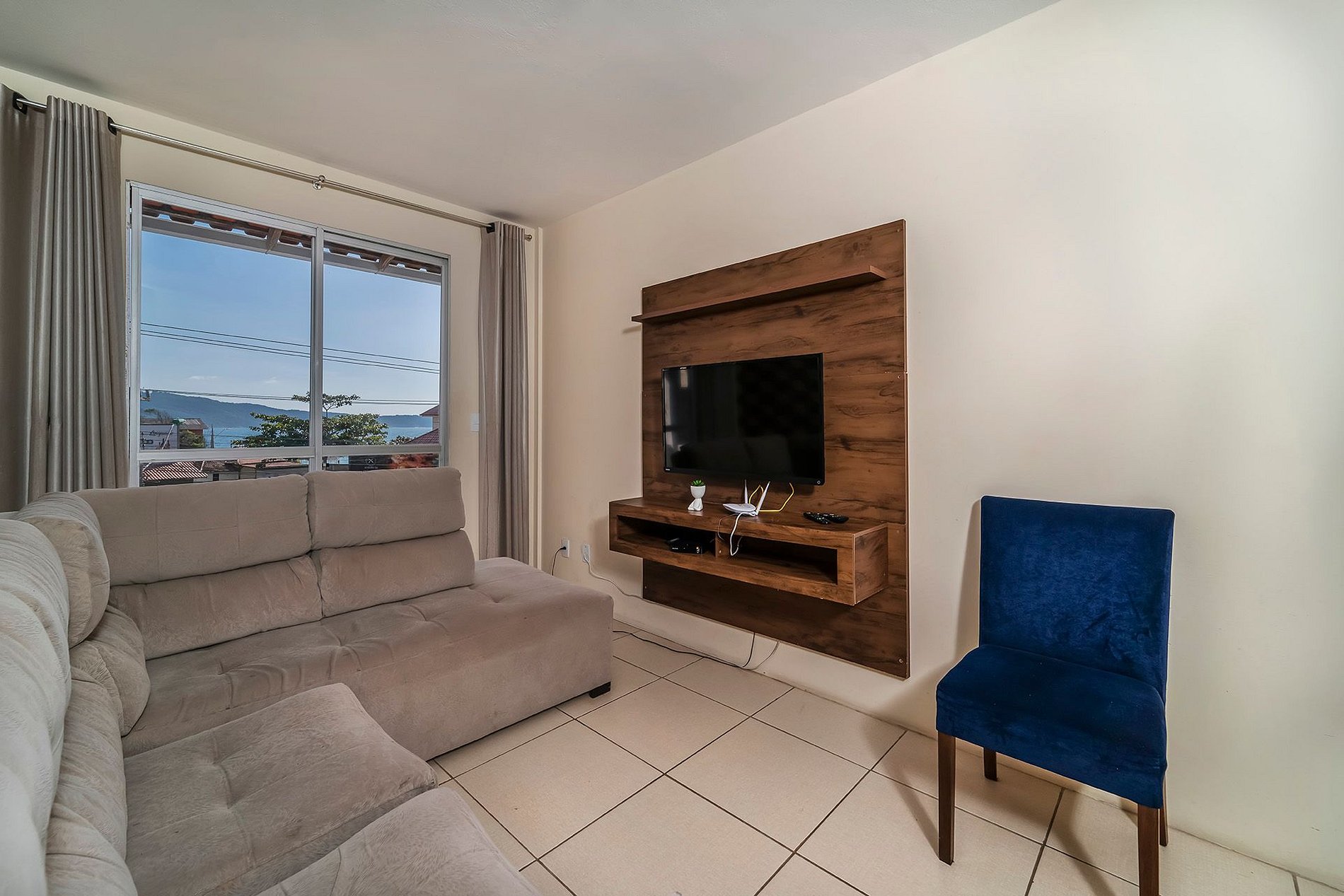 O apartamento tem capacidade para até 06 pessoas em 02 dormitórios (incluindo crianças de qualquer idade), com cozinha, sala, área de serviço, churrasqueira, sacada e garagem.