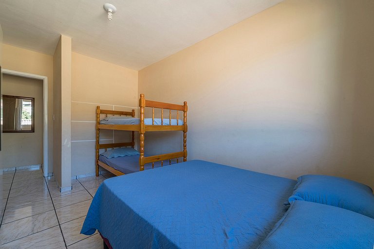 O apartamento tem capacidade para até 06 pessoas em 02 dormitórios (incluindo crianças de qualquer idade), com cozinha, sala, área de serviço, churrasqueira, sacada e garagem.