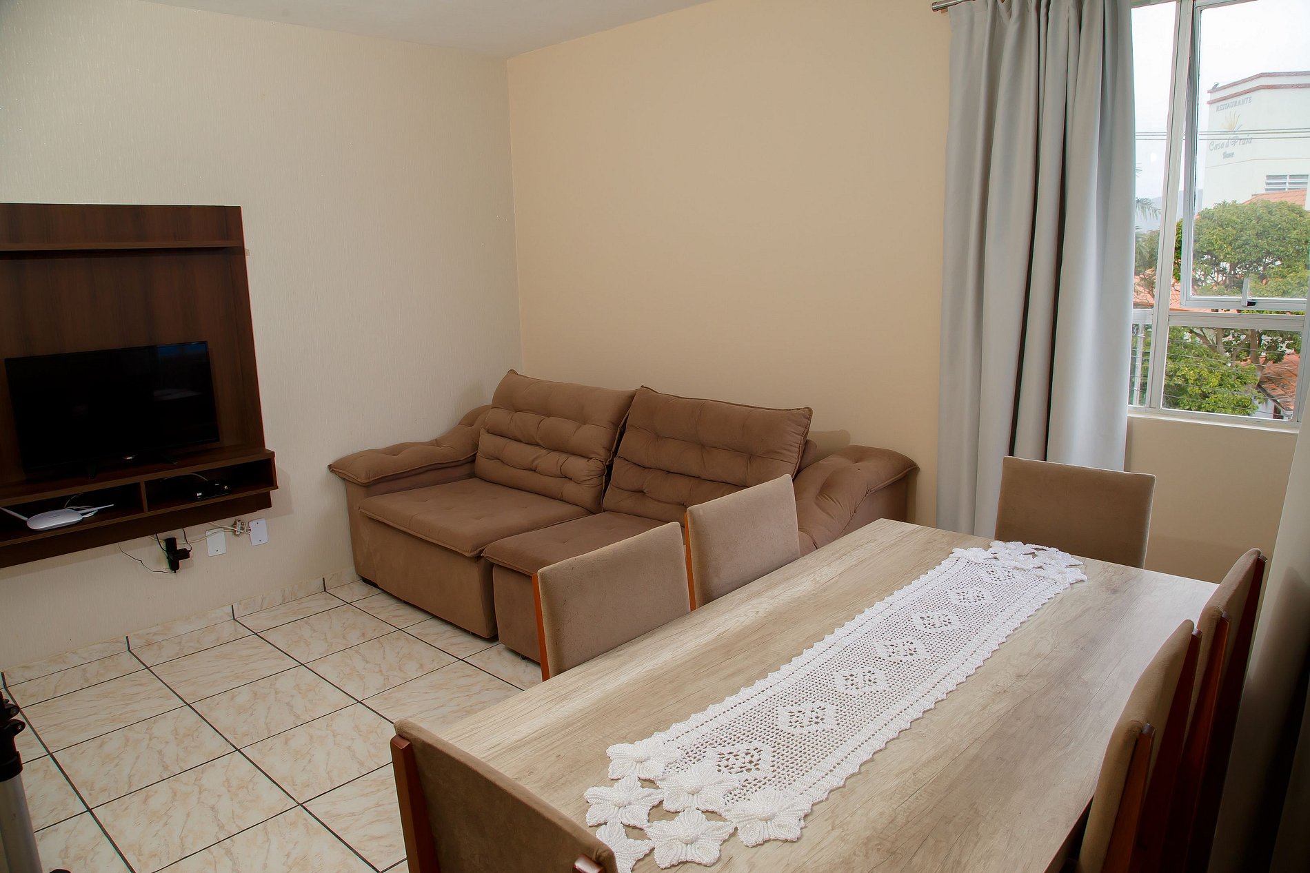 - Sala de estar com TV e sacada;