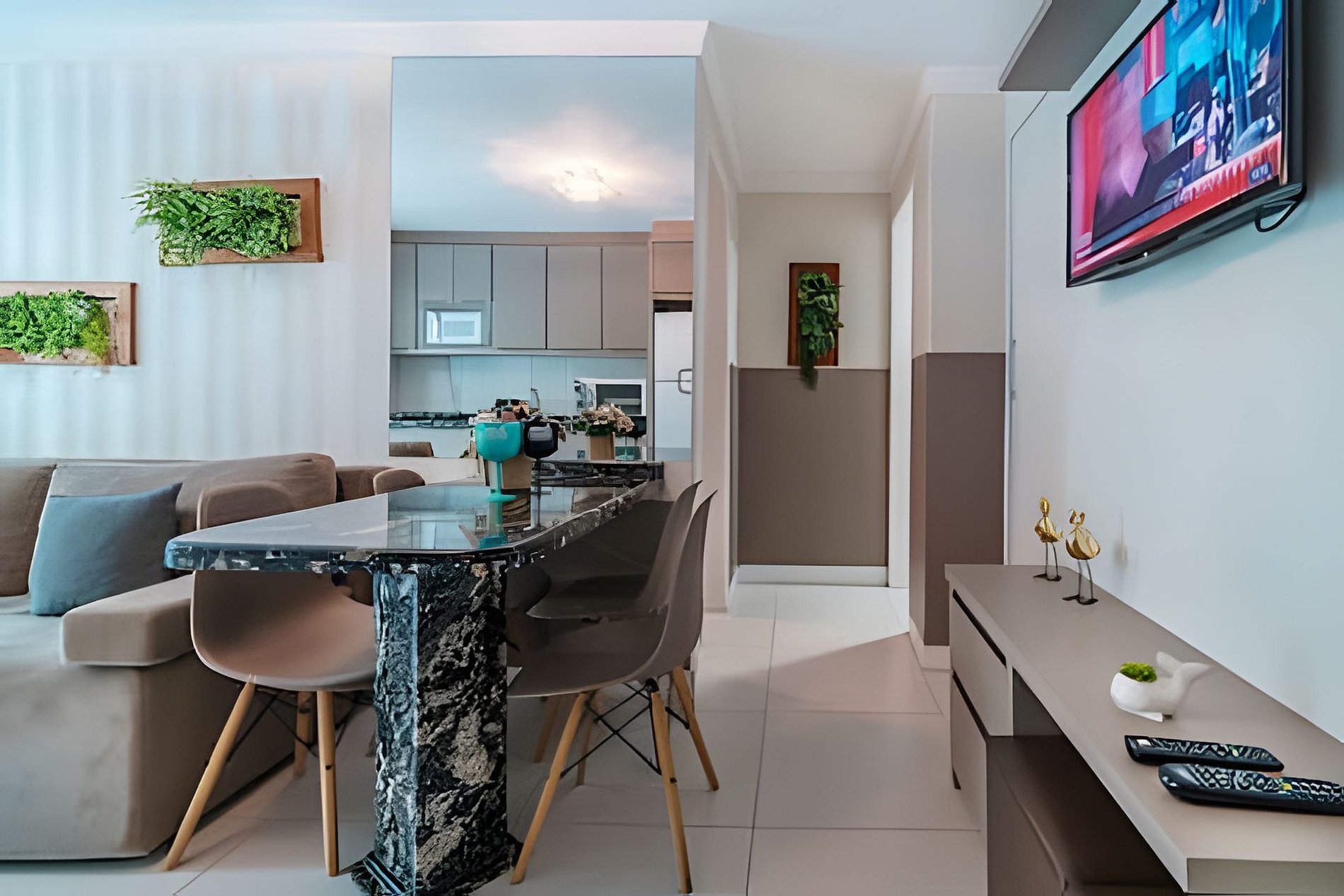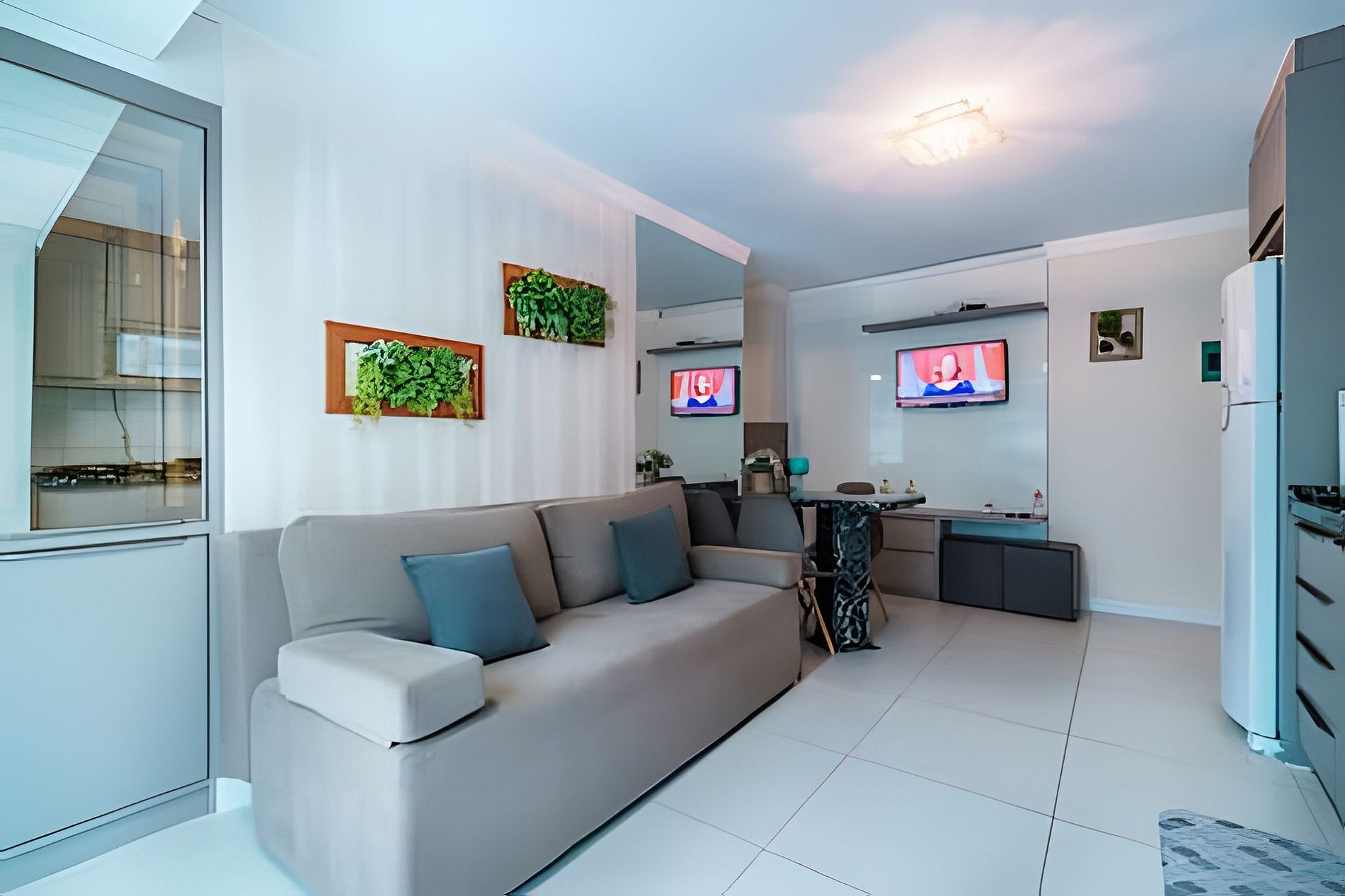 - Sala de estar com TV e sacada;