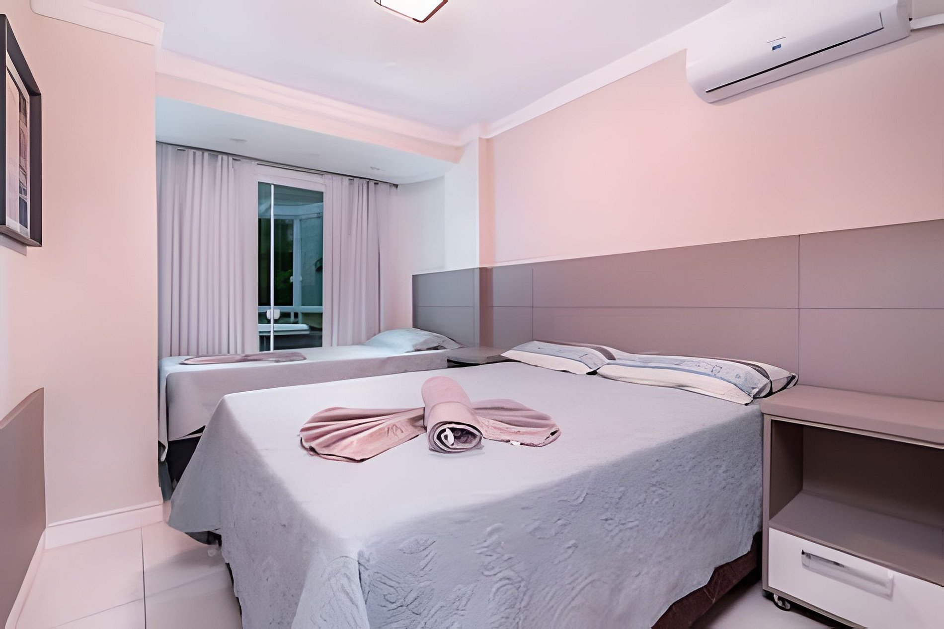 - 01 quarto com cama box de casal e uma cama de solteiro ar condicionado split;