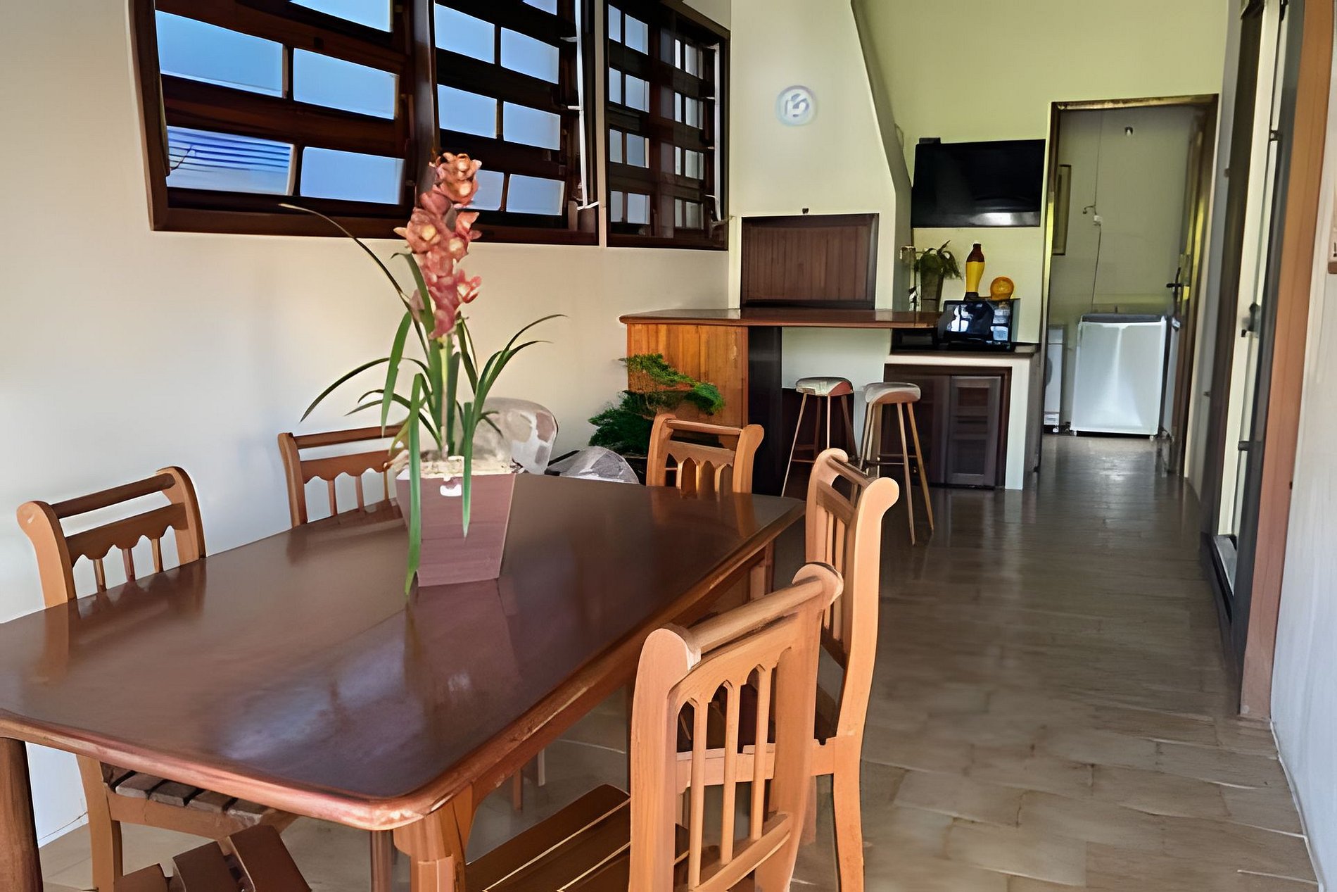 A Casa tem capacidade para até 08 pessoas em 02 dormitórios (incluindo crianças de qualquer idade), com cozinha, sala, área de serviço, churrasqueira, varanda e garagem.