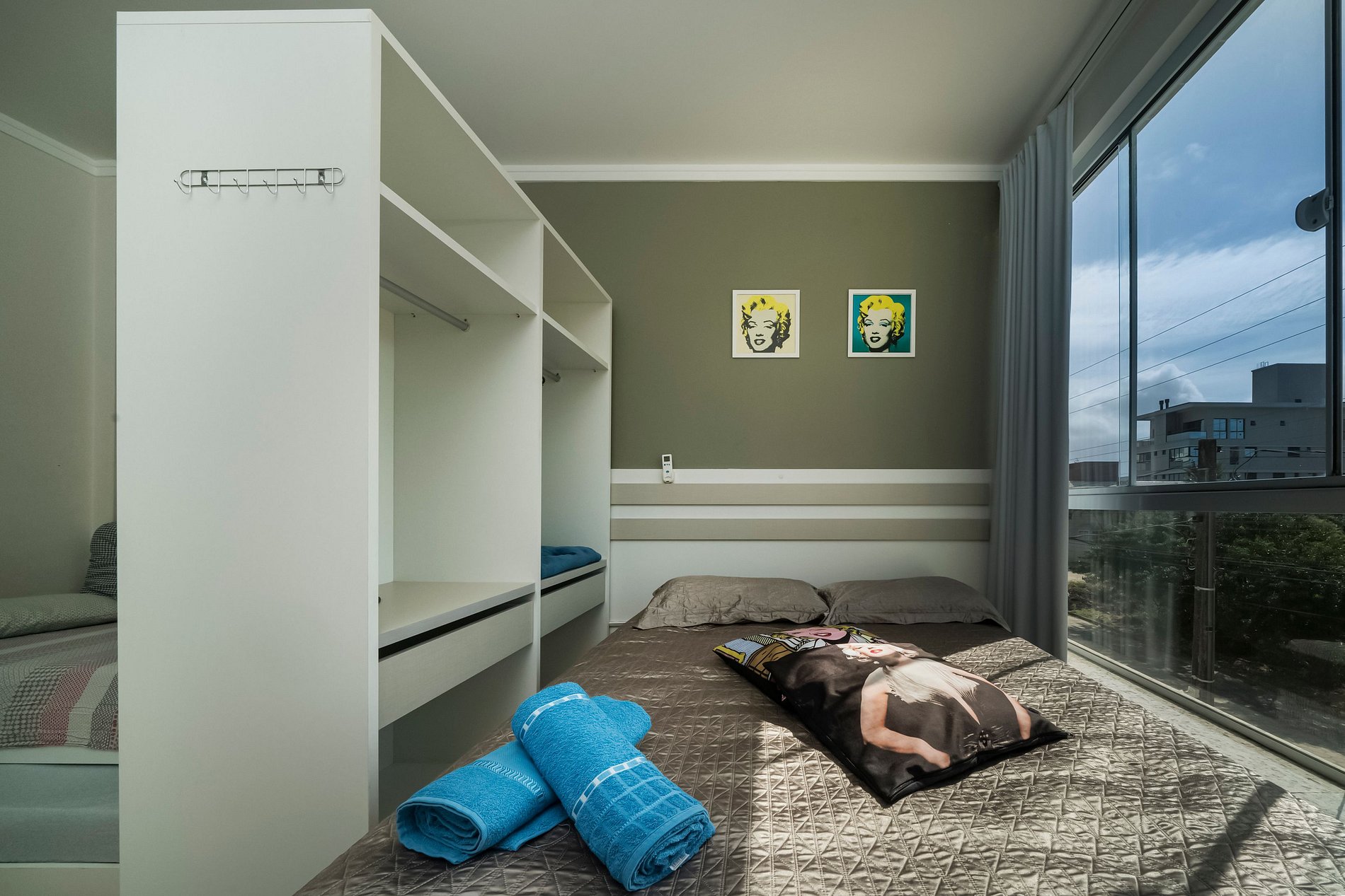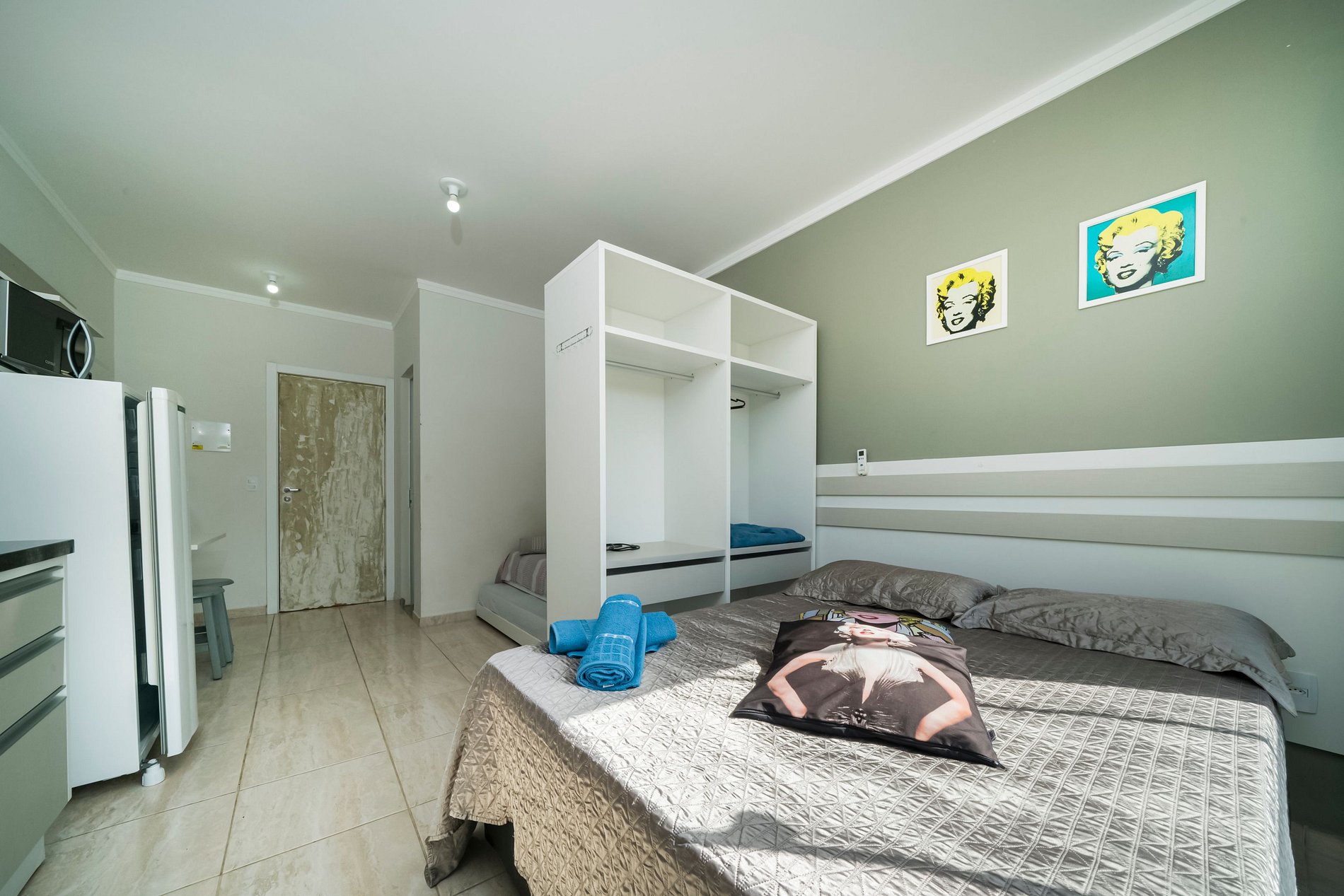 Uma cama de casal e um bicama de solteiro,