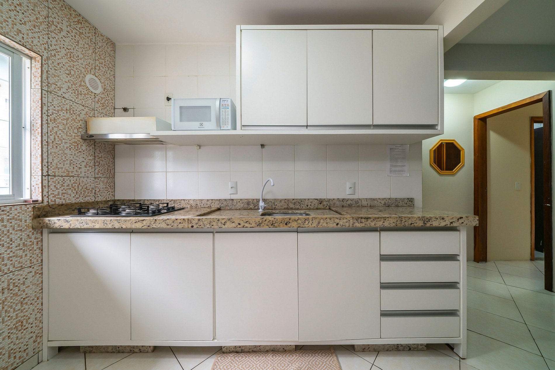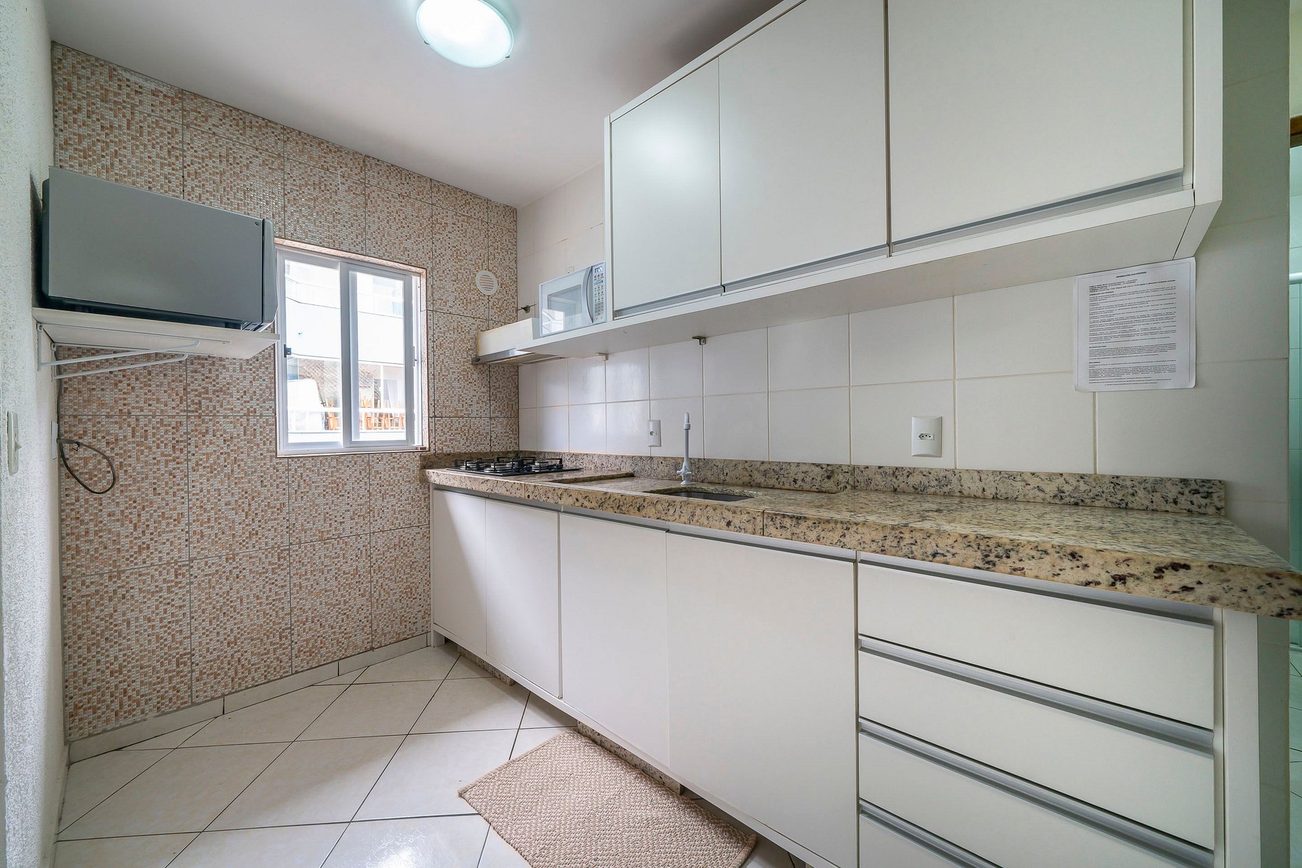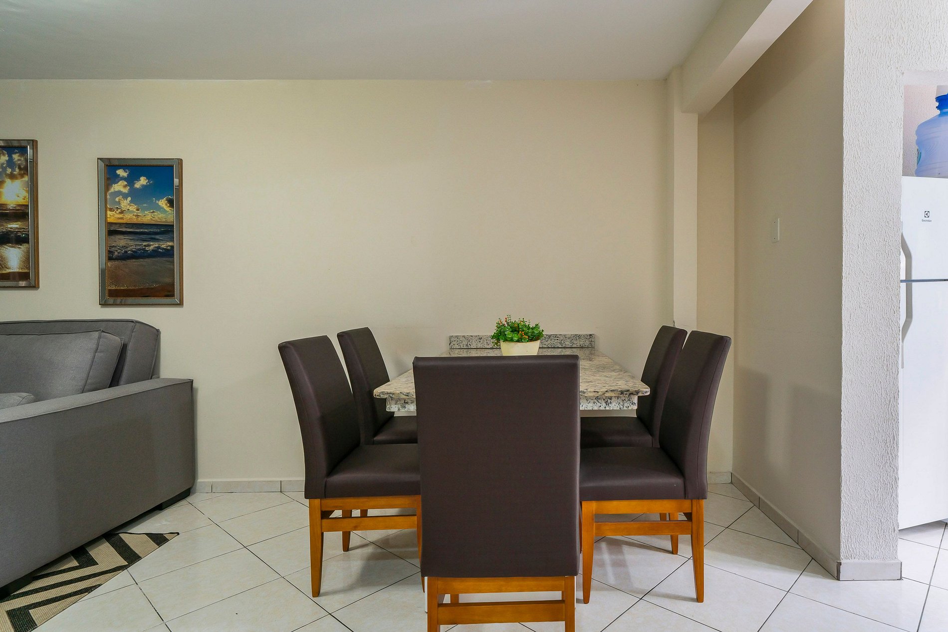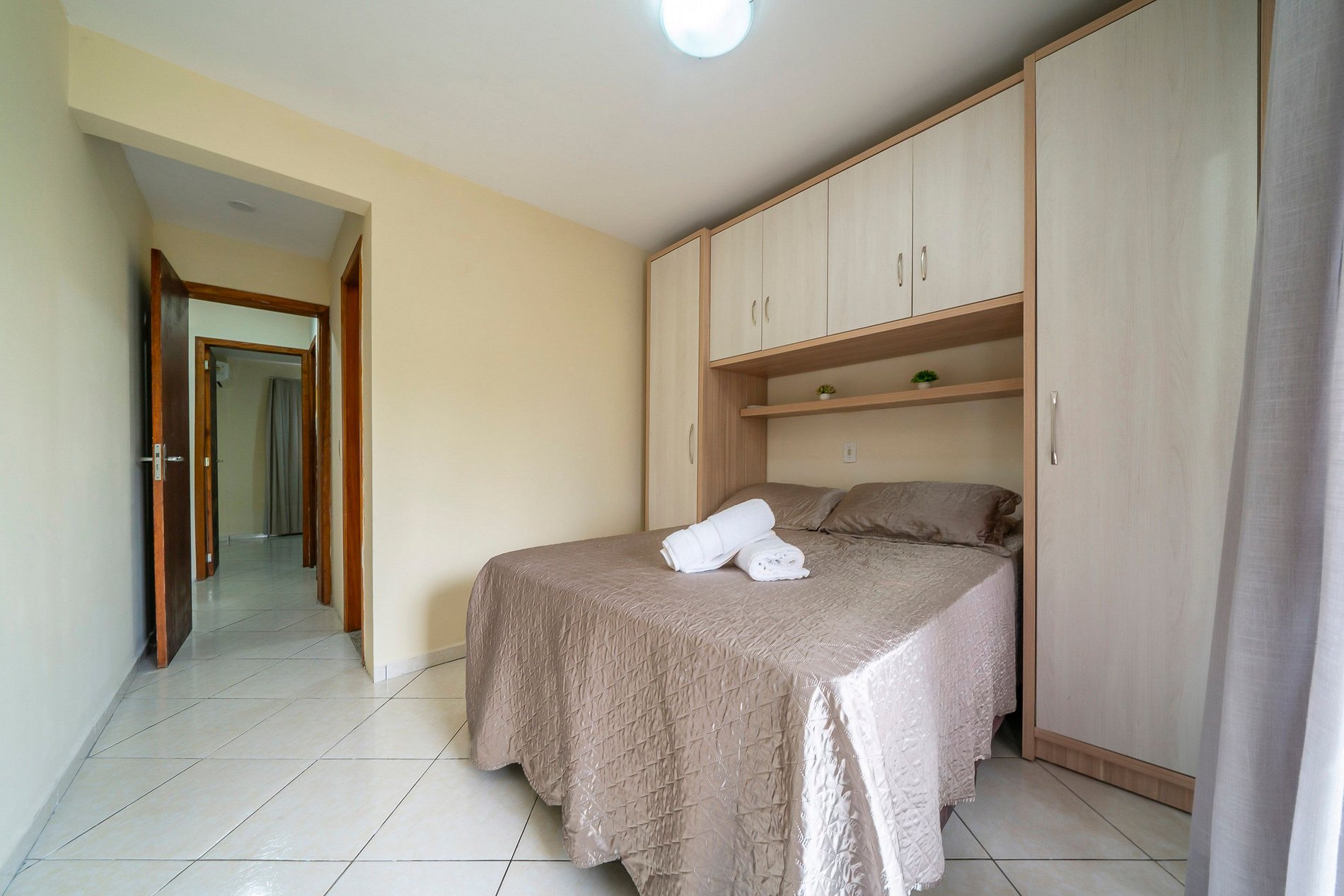 O apartamento tem capacidade para até 06 pessoas em 02 dormitórios (incluindo crianças de qualquer idade), com cozinha, sala, área de serviço, churrasqueira, sacada e vaga para 01 carro em garagem não coberta,