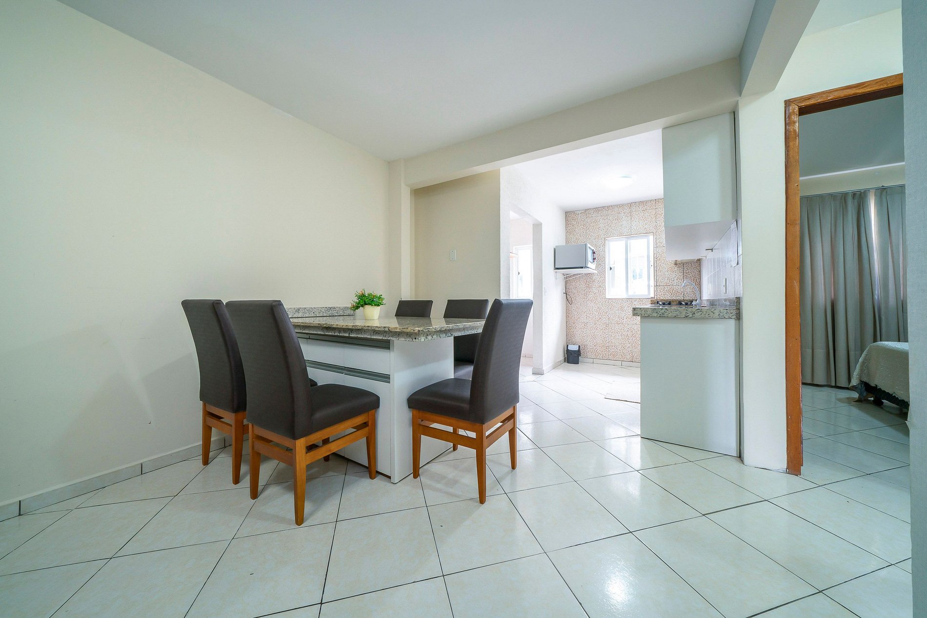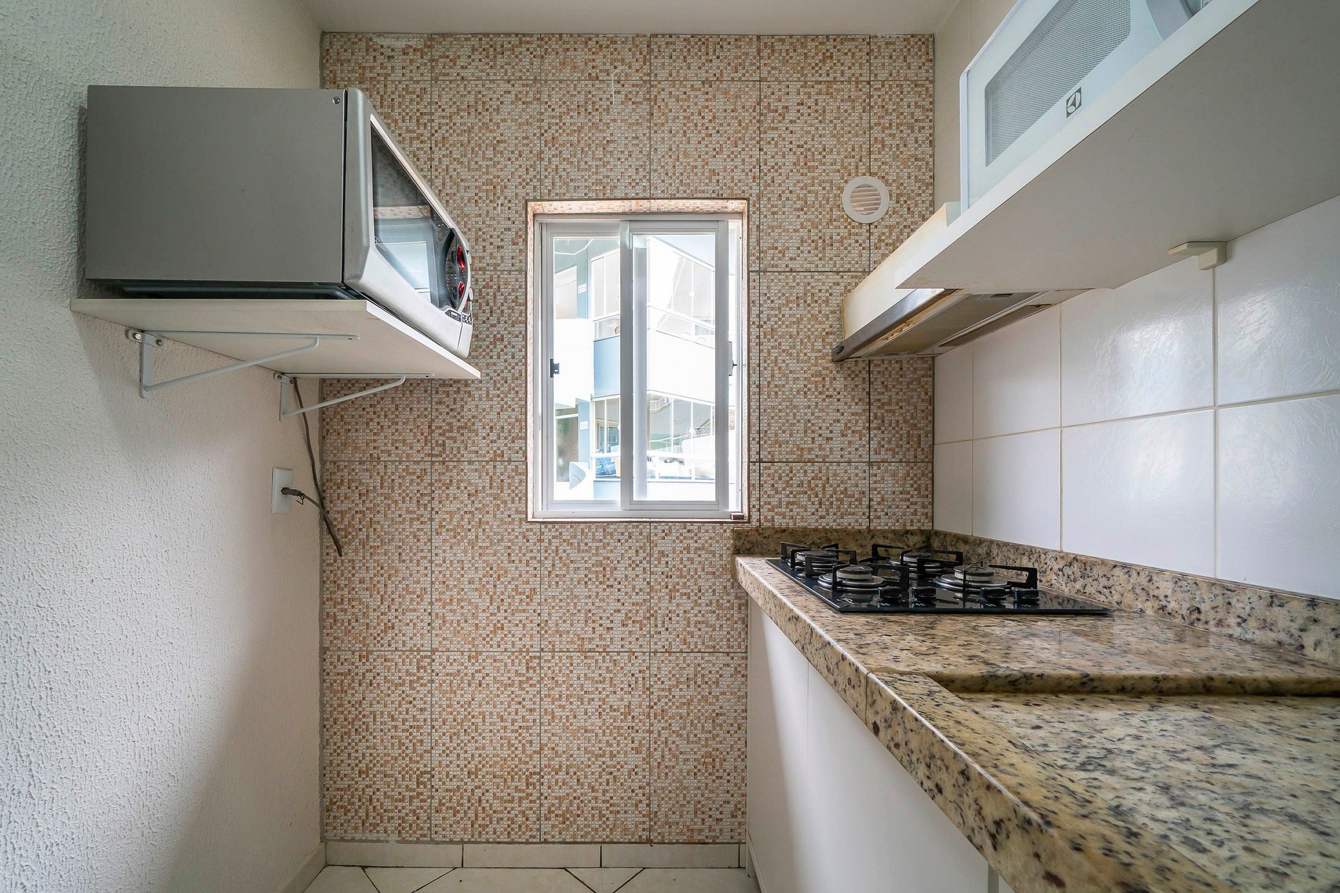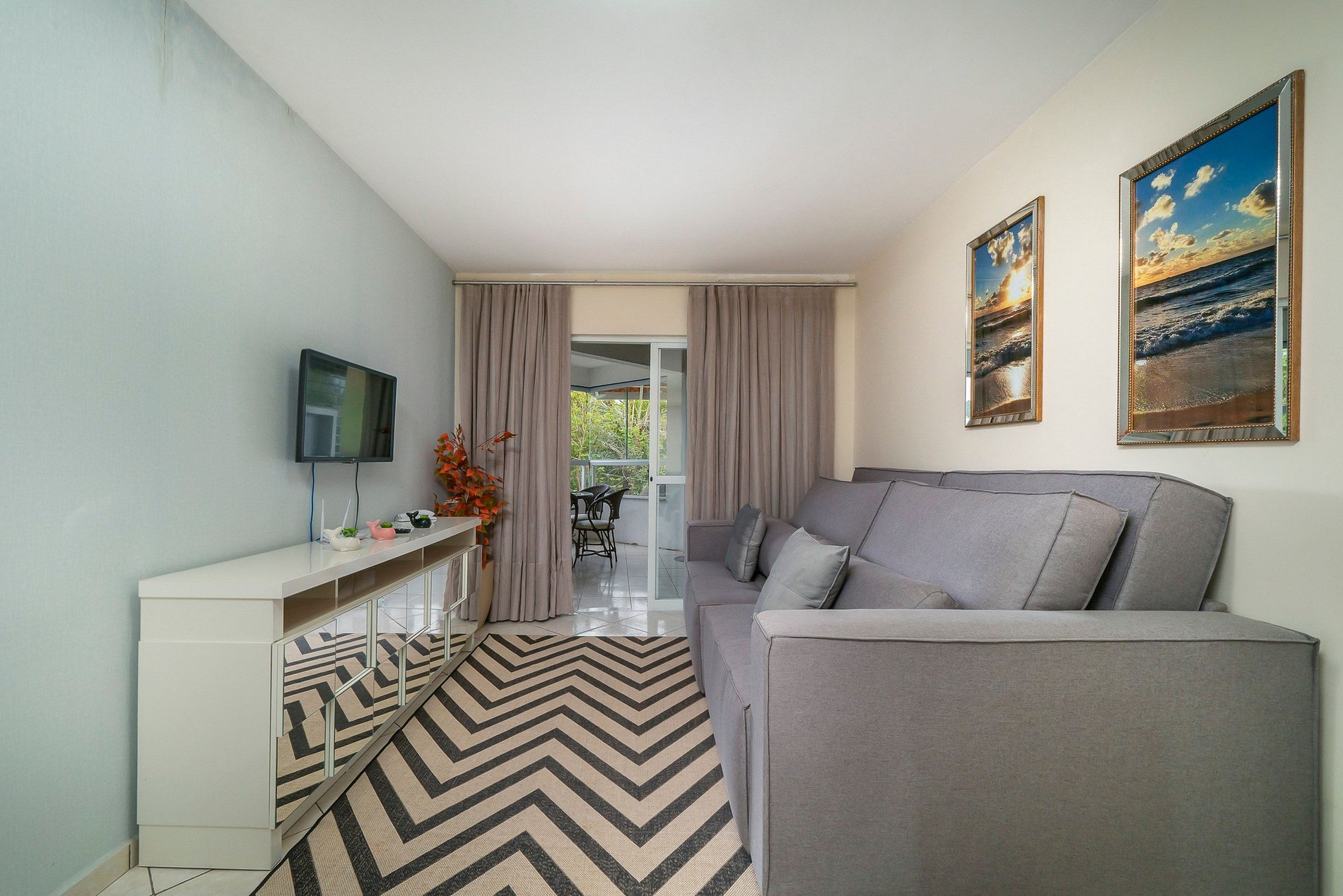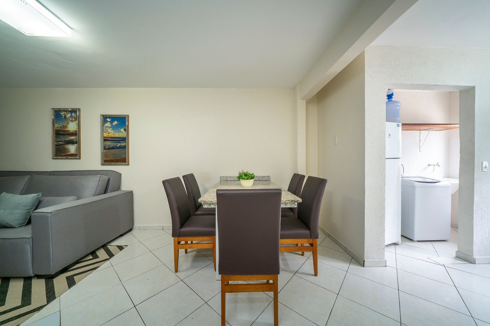 O apartamento tem capacidade para até 06 pessoas em 02 dormitórios (incluindo crianças de qualquer idade), com cozinha, sala, área de serviço, churrasqueira, sacada e vaga para 01 carro em garagem não coberta,