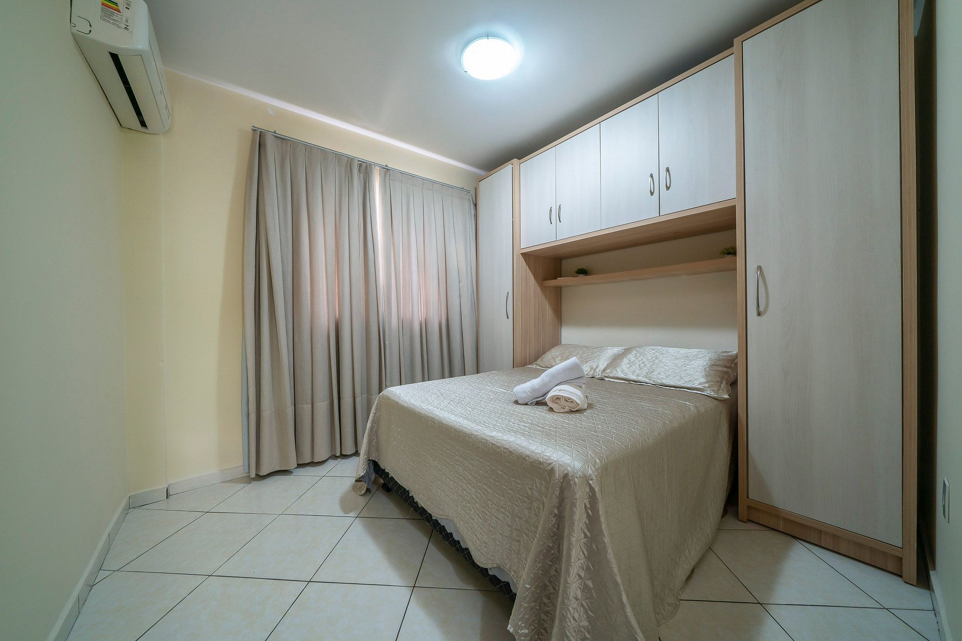 -02 quartos com cama box de casal ar condicionado split, sendo uma suíte