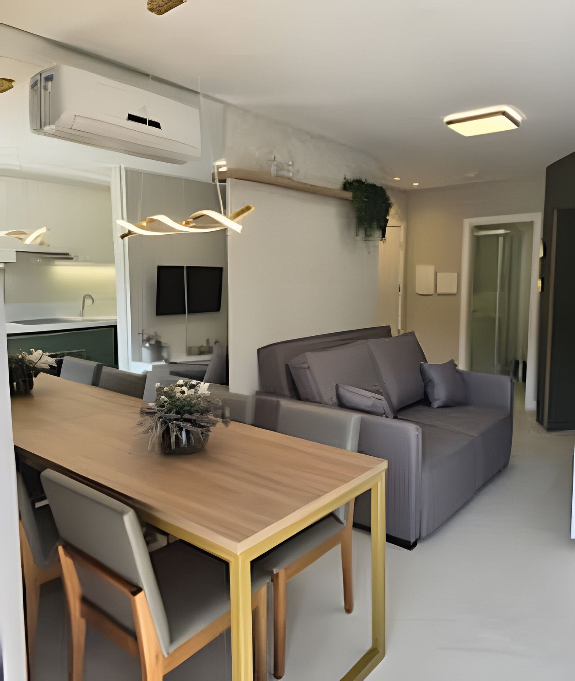 O apartamento tem capacidade para até 04 pessoas em 01 dormitórios (incluindo crianças de qualquer idade), com cozinha/sala integrada, churrasqueira, sacada e garagem.