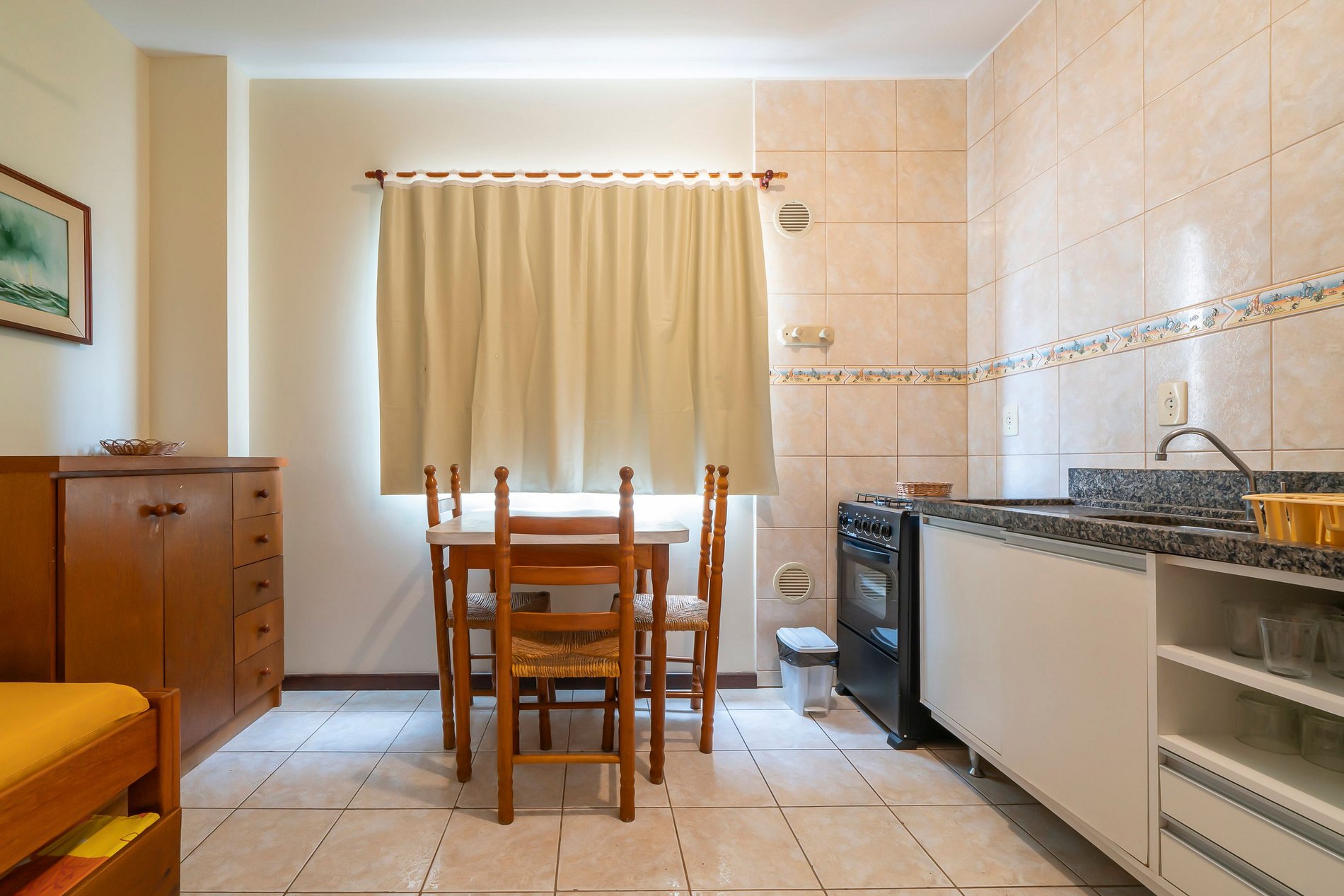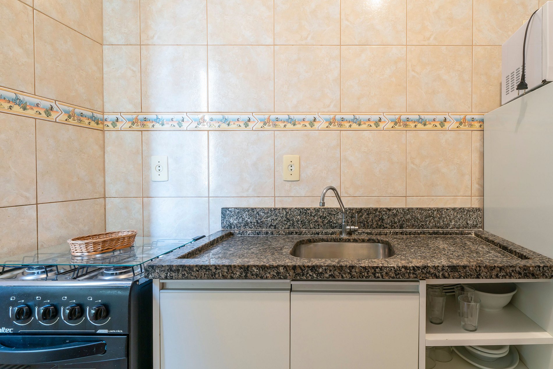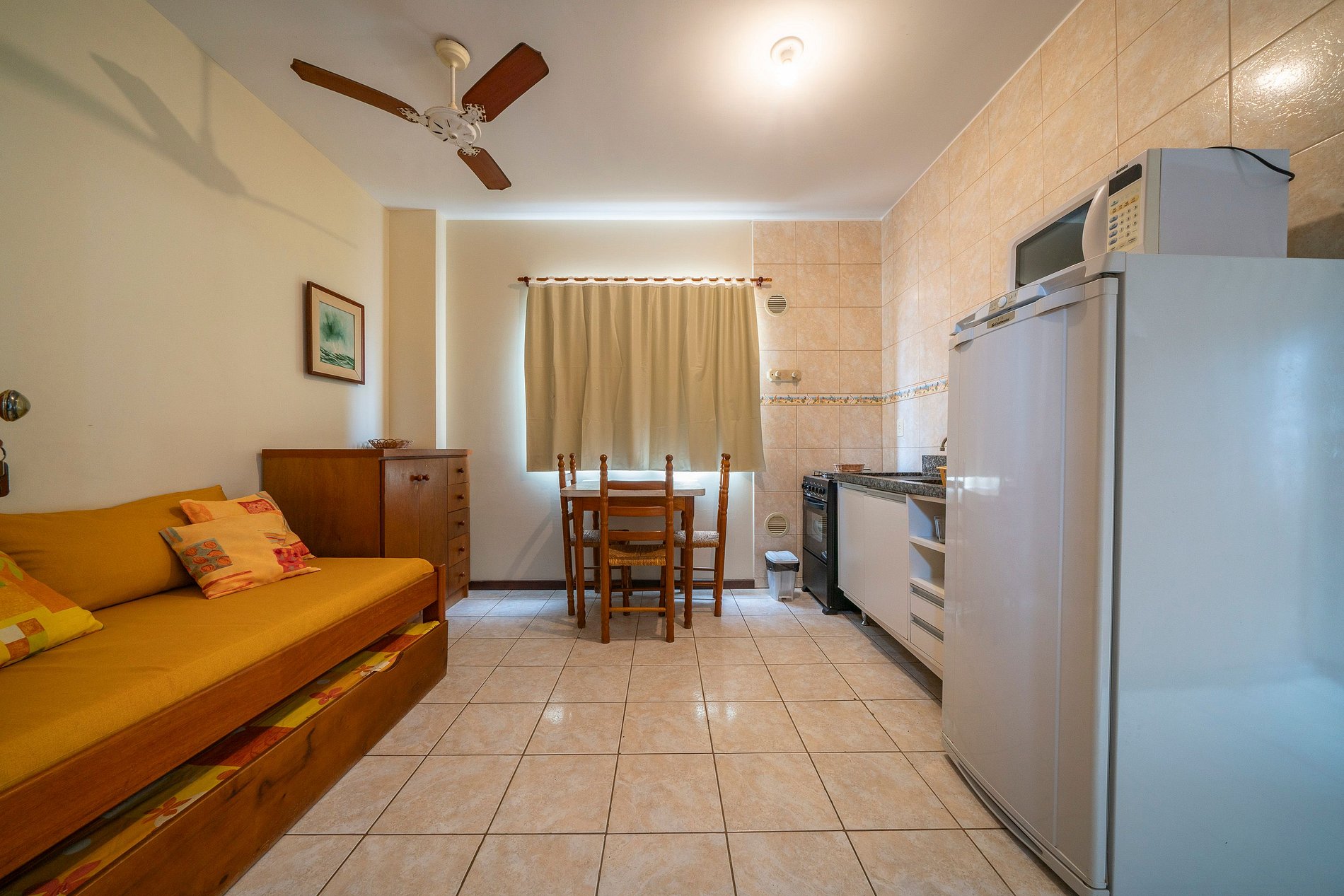 O apartamento tem capacidade para até 04 pessoas em 01 dormitório (incluindo crianças de qualquer idade), com cozinha/ sala integrada, sacada com churrasqueira (tambor) e garagem.