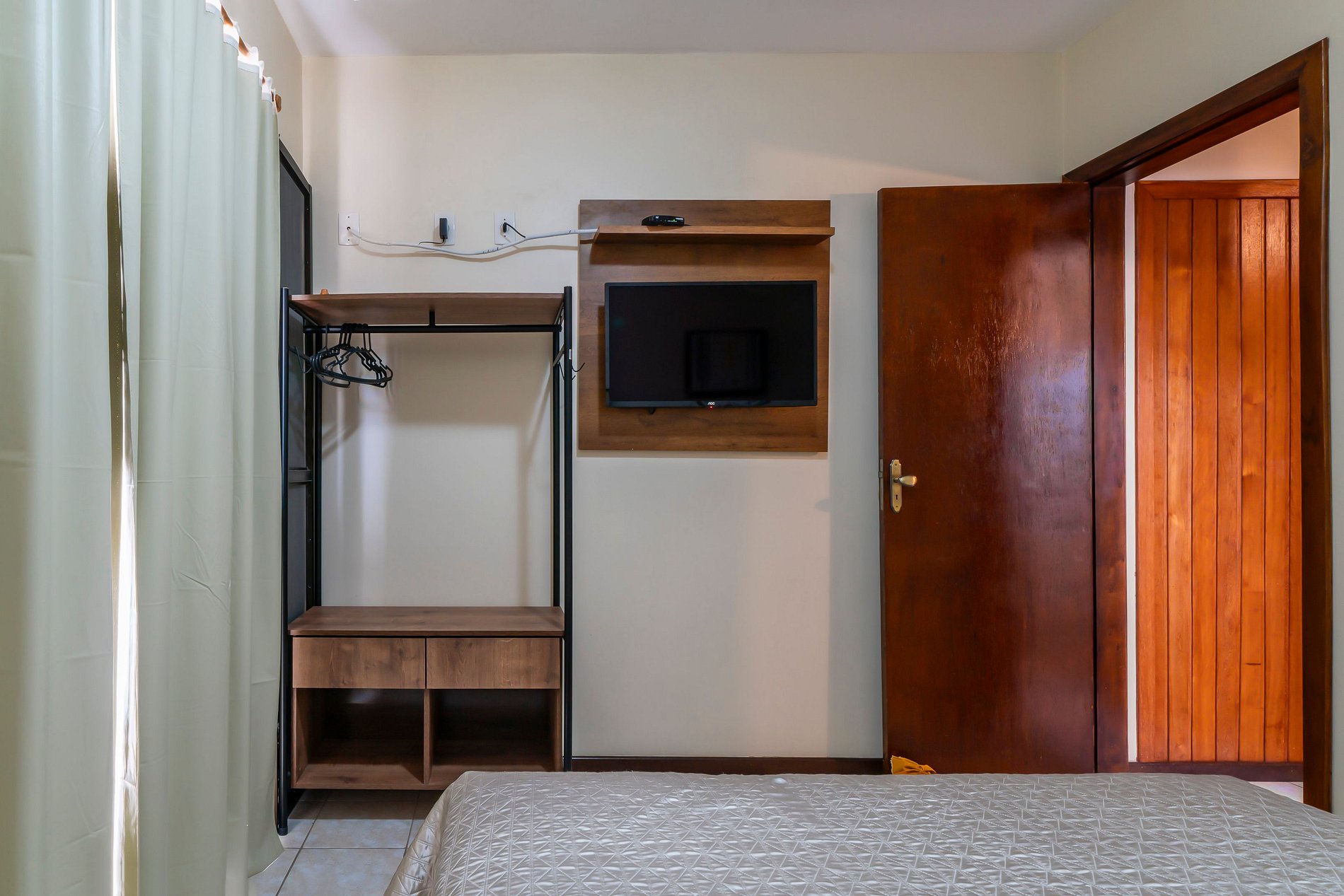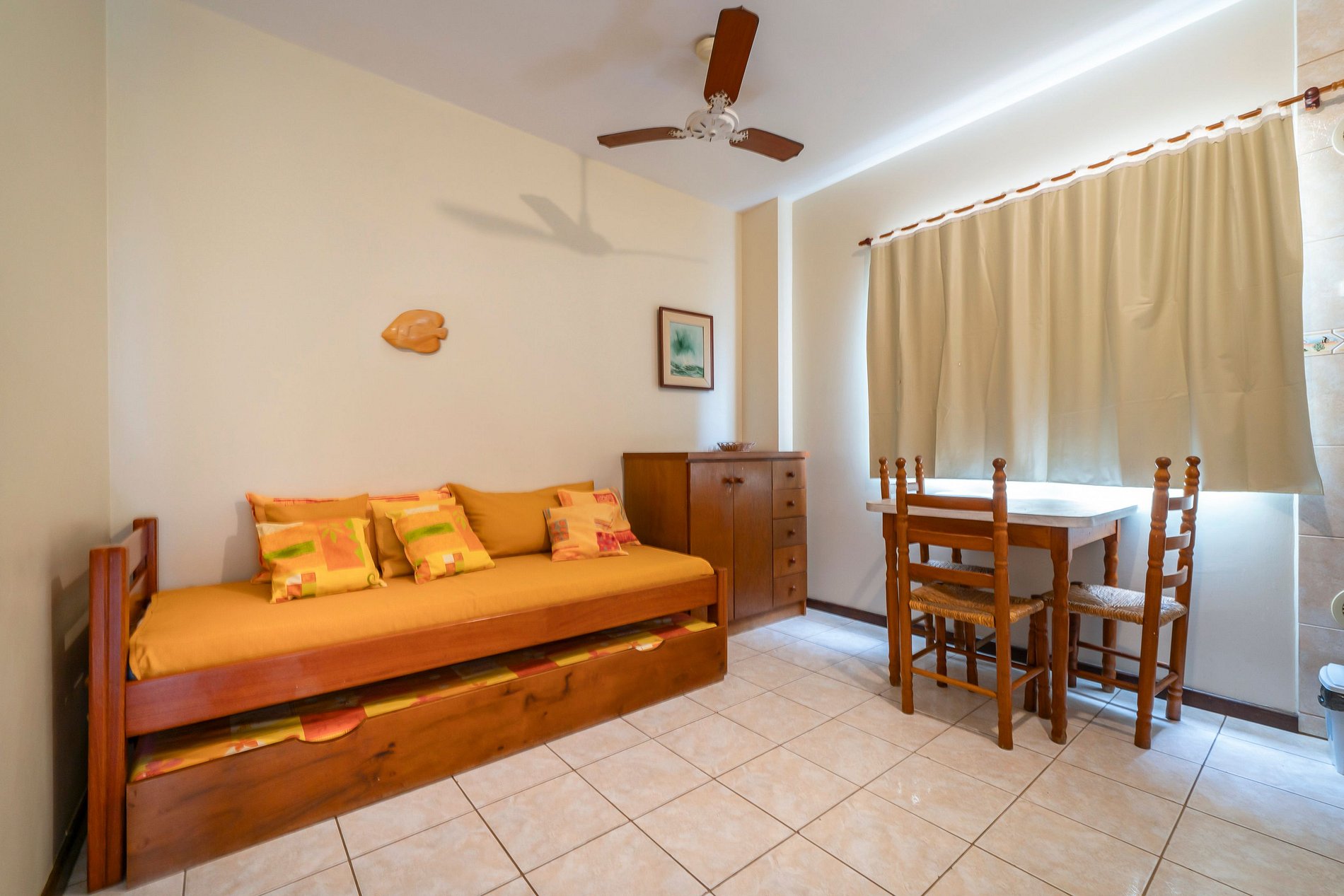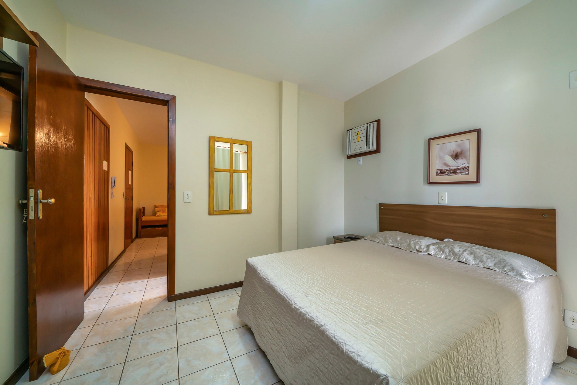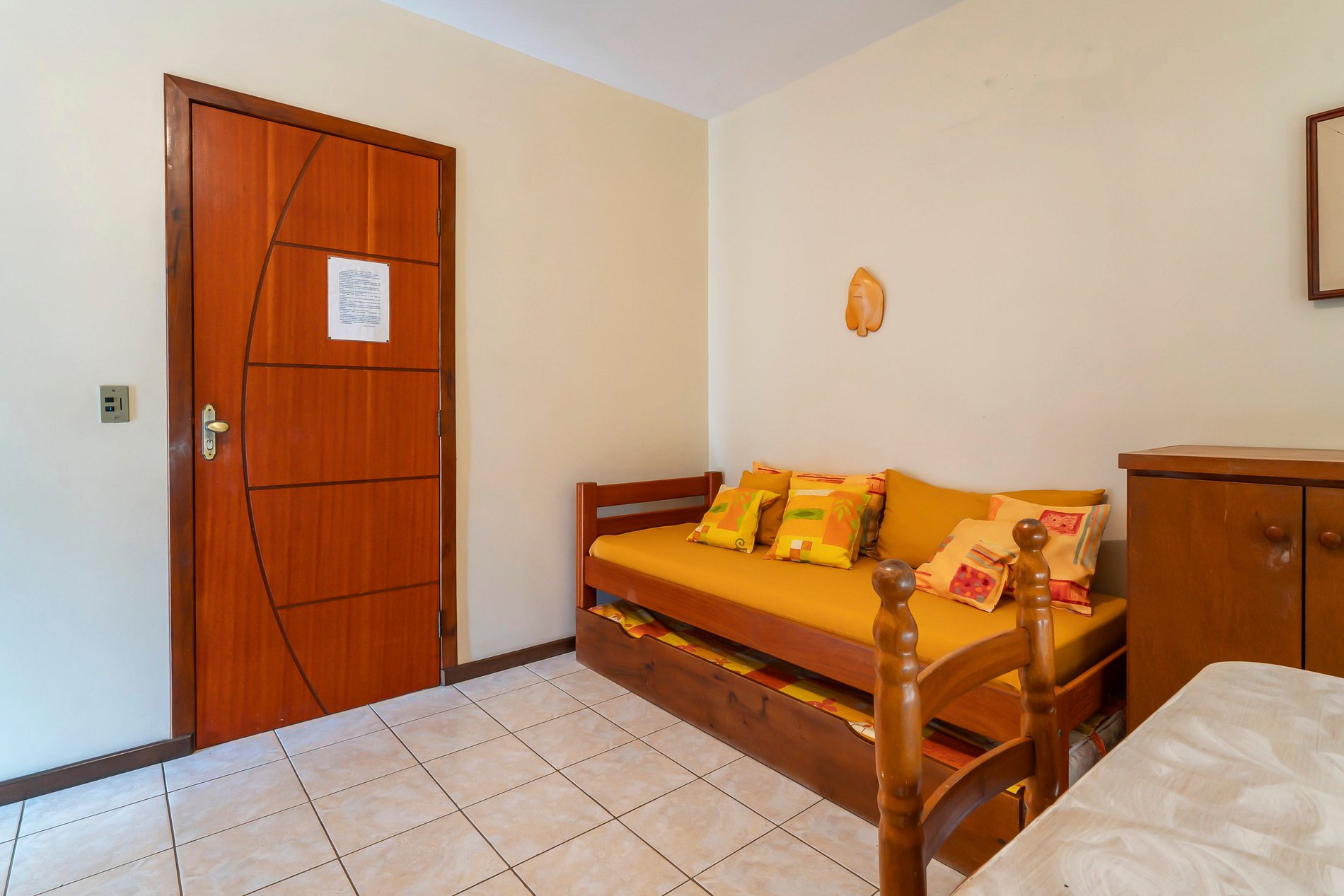 O apartamento tem capacidade para até 04 pessoas em 01 dormitório (incluindo crianças de qualquer idade), com cozinha/ sala integrada, sacada com churrasqueira (tambor) e garagem.