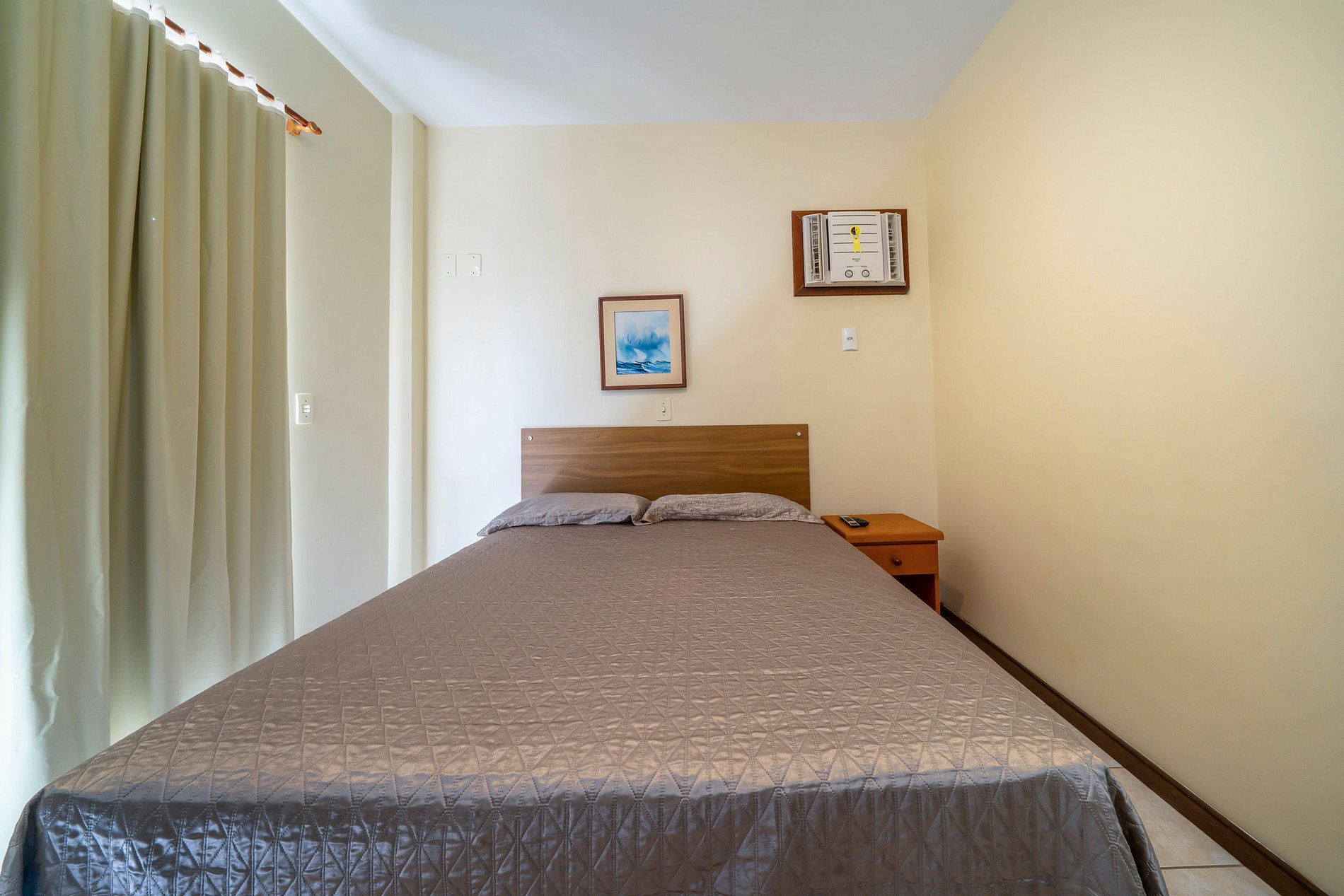- 01 quarto com cama box de casal ar condicionado split;