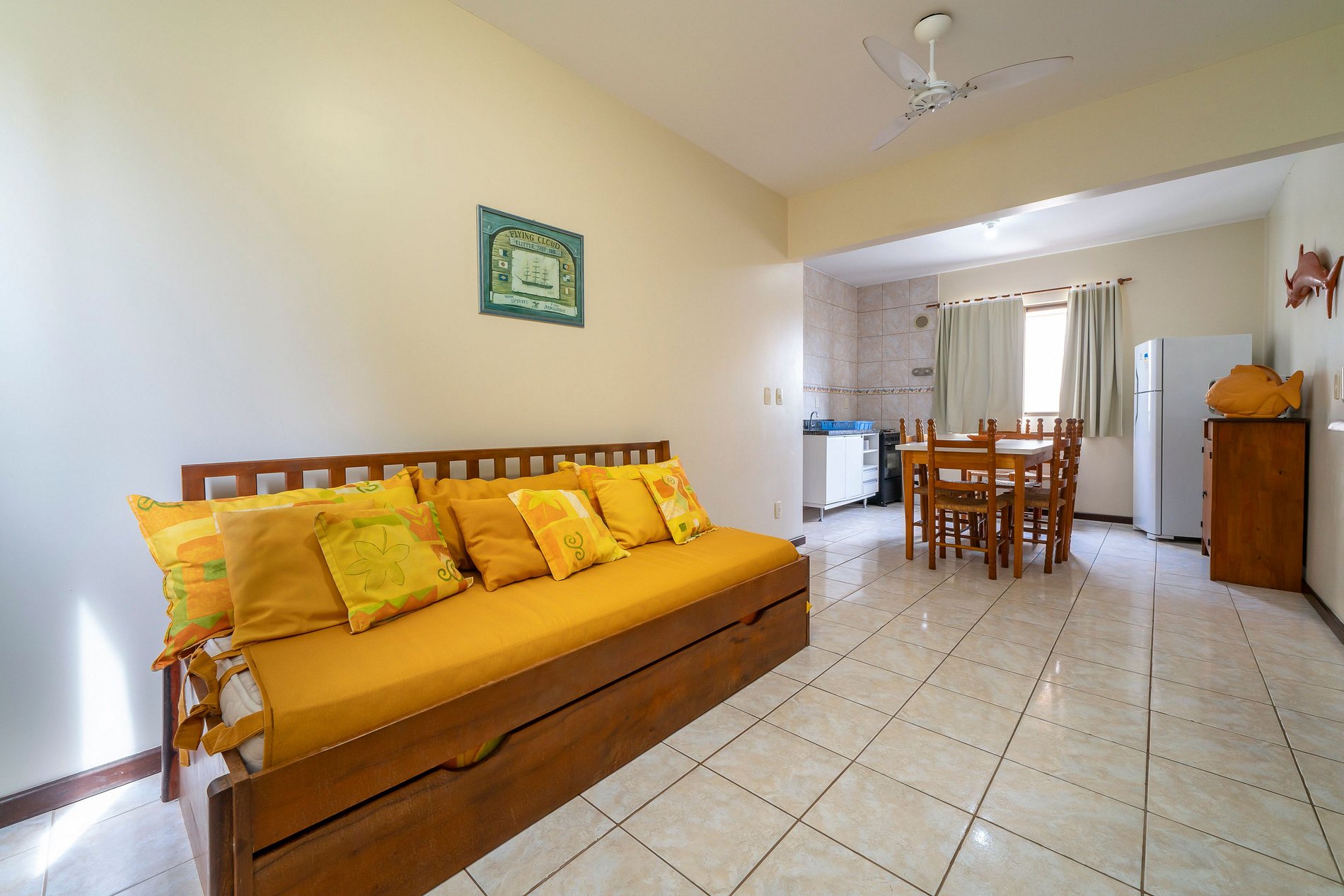 - Cozinha equipada integrada a sala com um bicama solteiro;