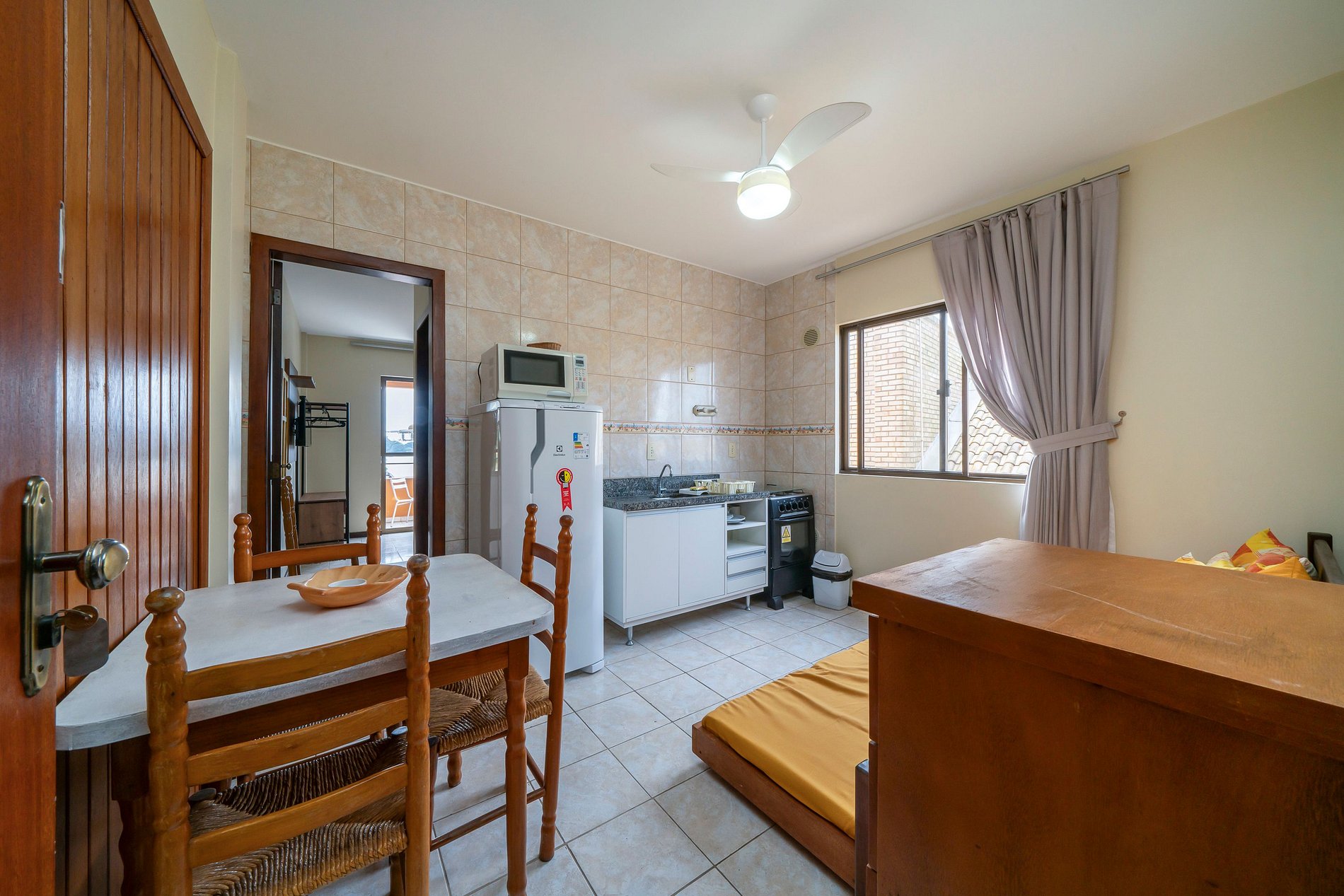 - Cozinha equipada integrada com sala e um bicama solteiro