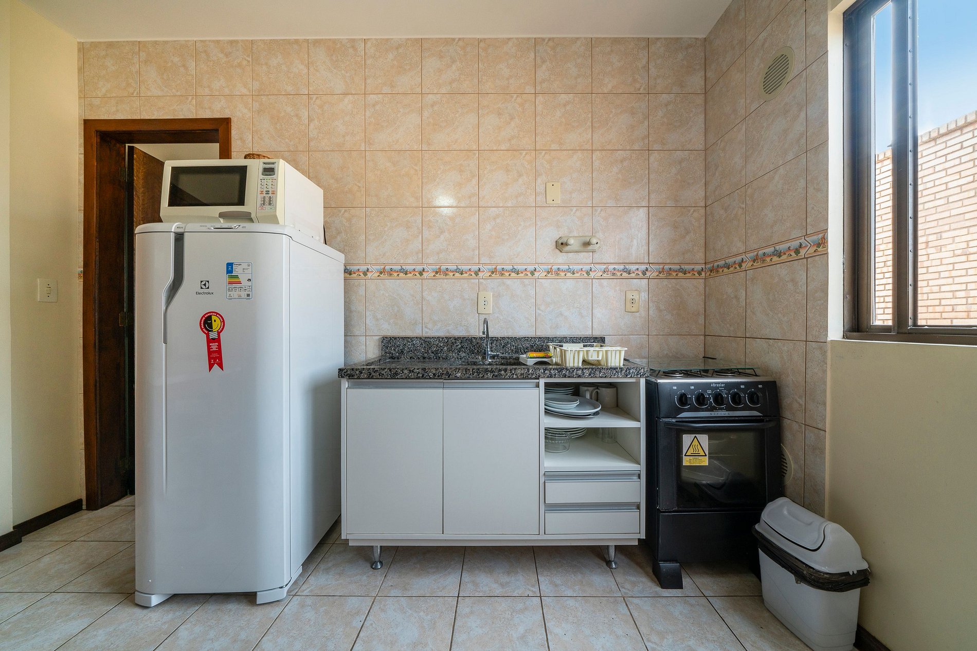 O apartamento tem capacidade para até 04 pessoas em 01 dormitório (incluindo crianças de qualquer idade), com cozinha / sala integrada, sacada com churrasqueira e garagem.