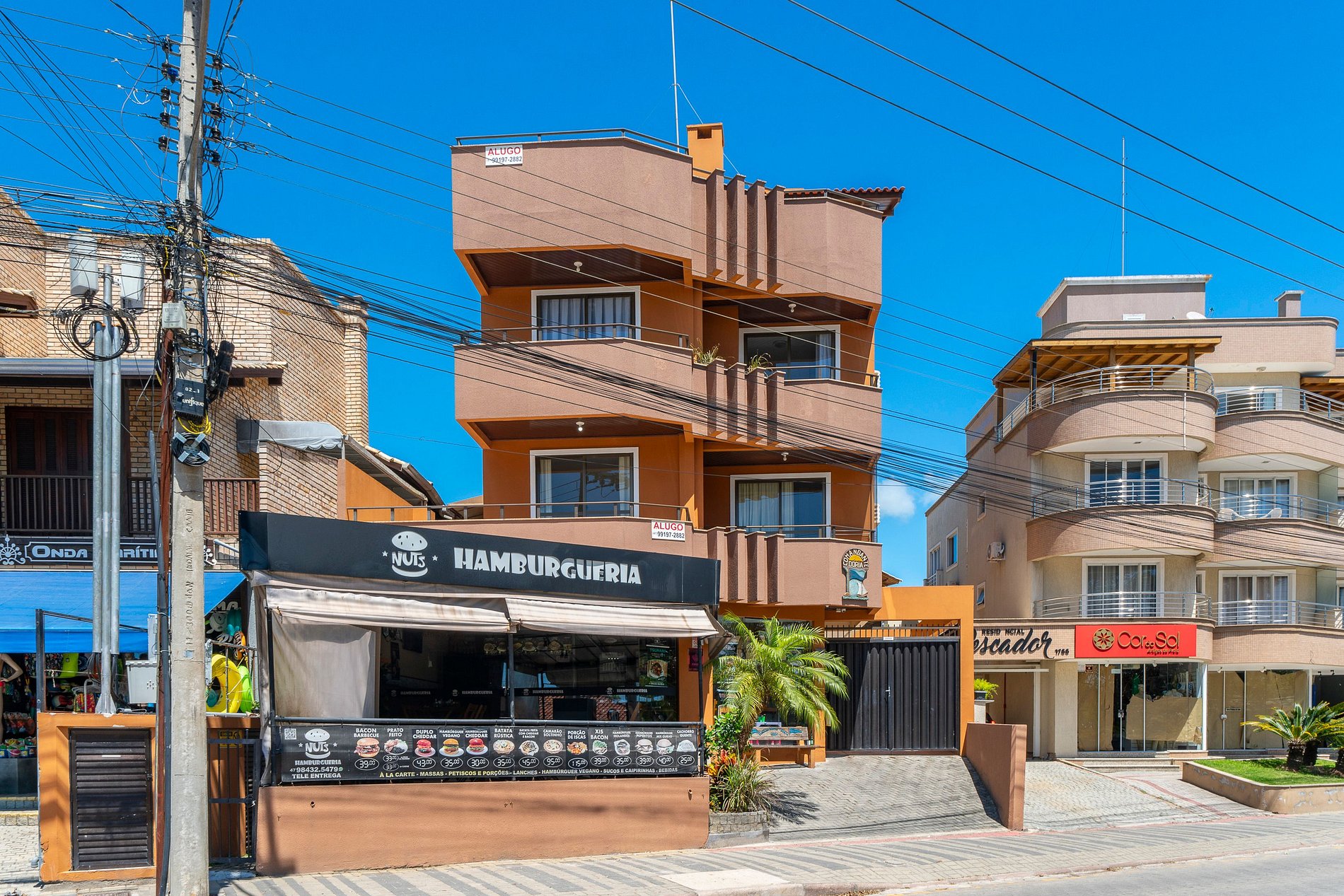 Nos arredores, você terá à disposição uma grande variedade de serviços, incluindo restaurantes, bares, supermercados, lojas e farmácias. A localização central do residencial facilita o acesso a todos os pontos turísticos de Bombinhas, além de oferecer praticidade para o dia a dia, como a proximidade com a famosa Baiuca Sucos, onde você pode desfrutar de sucos naturais frescos.