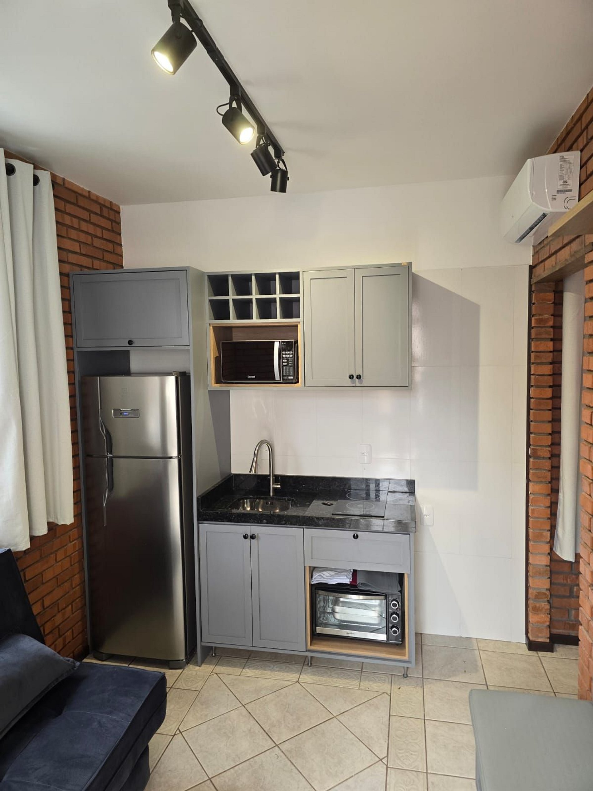 Lindo apartamento tem capacidade para até 04 pessoas em 01 dormitório (incluindo crianças de qualquer idade), com cozinha/ sala, integrada, área de serviço comunitária, churrasqueira, sacada e garagem.