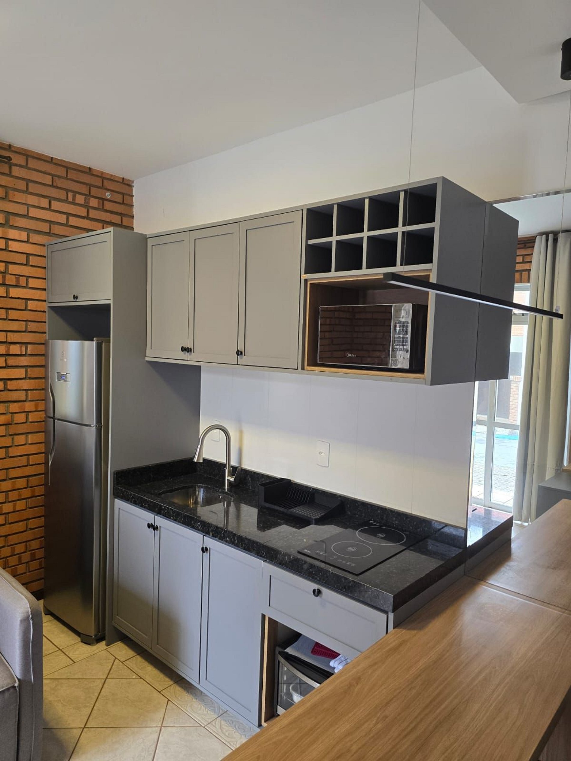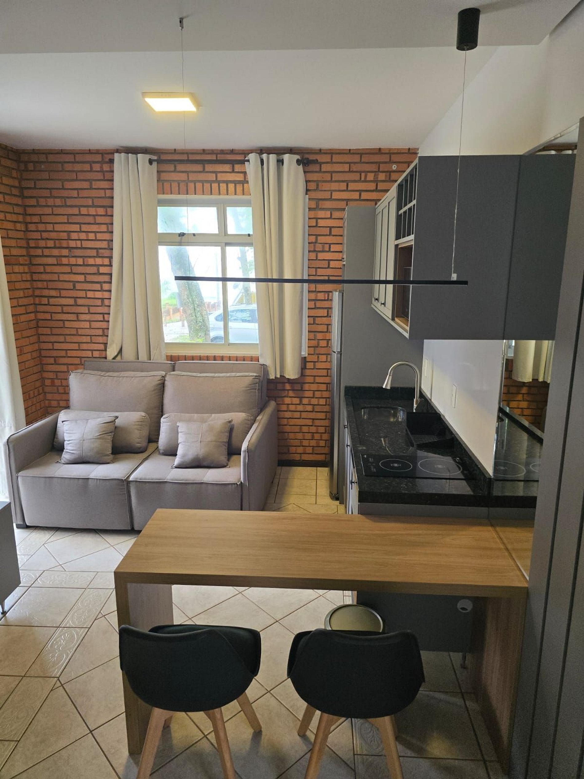 - Cozinha equipada/sala integrada com sofá cama;