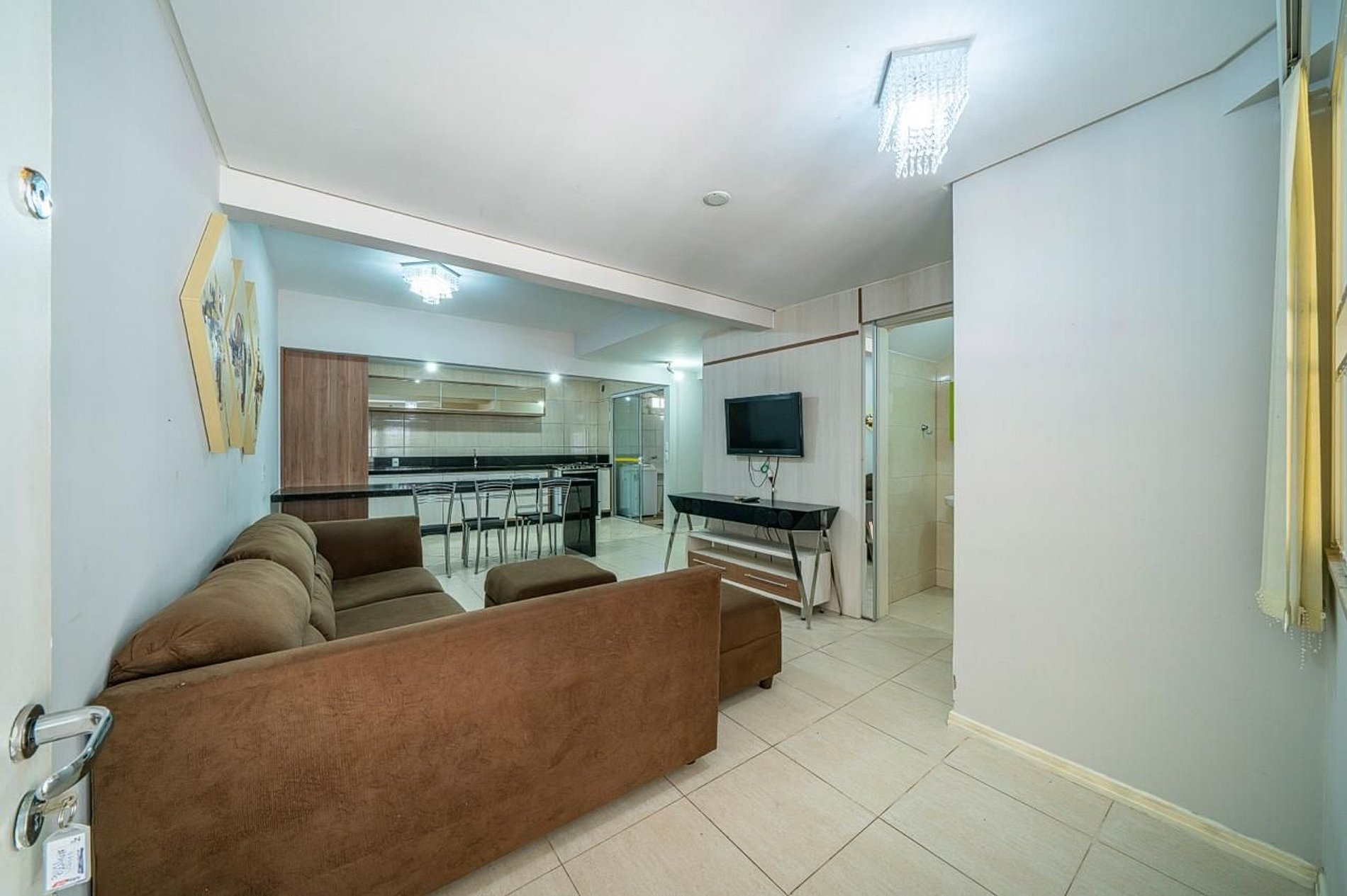 O apartamento tem capacidade para até 06 pessoas em 02 dormitórios (incluindo crianças de qualquer idade), com cozinha, sala, área de serviço, churrasqueira, sacada e garagem.