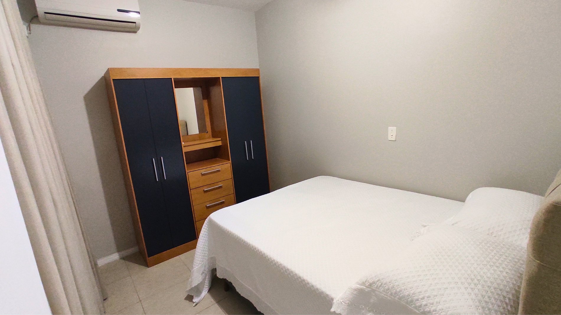 - 02 quartos com cama box de casal e ar condicionado split, sendo uma suíte