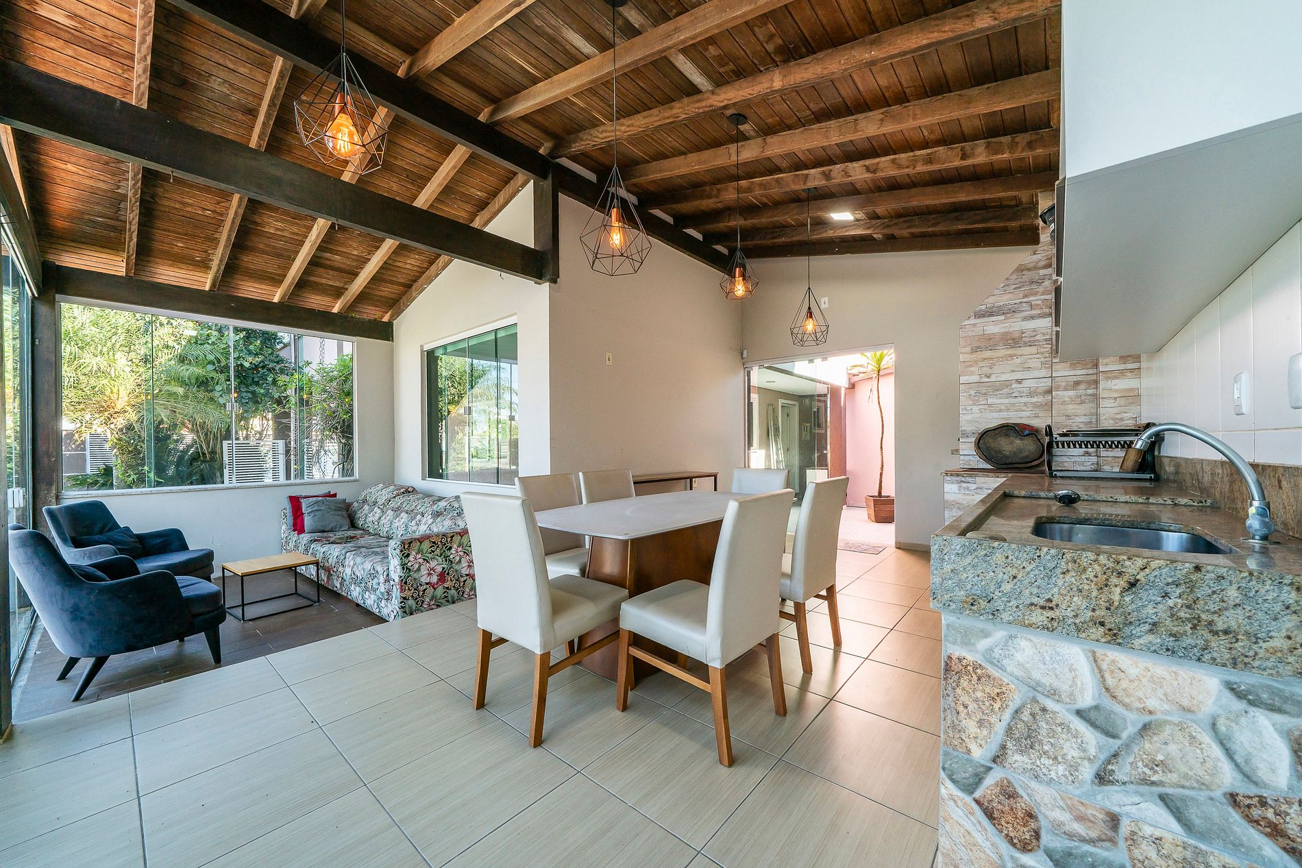 - Área de convivência com churrasqueira e fogão a lenha;