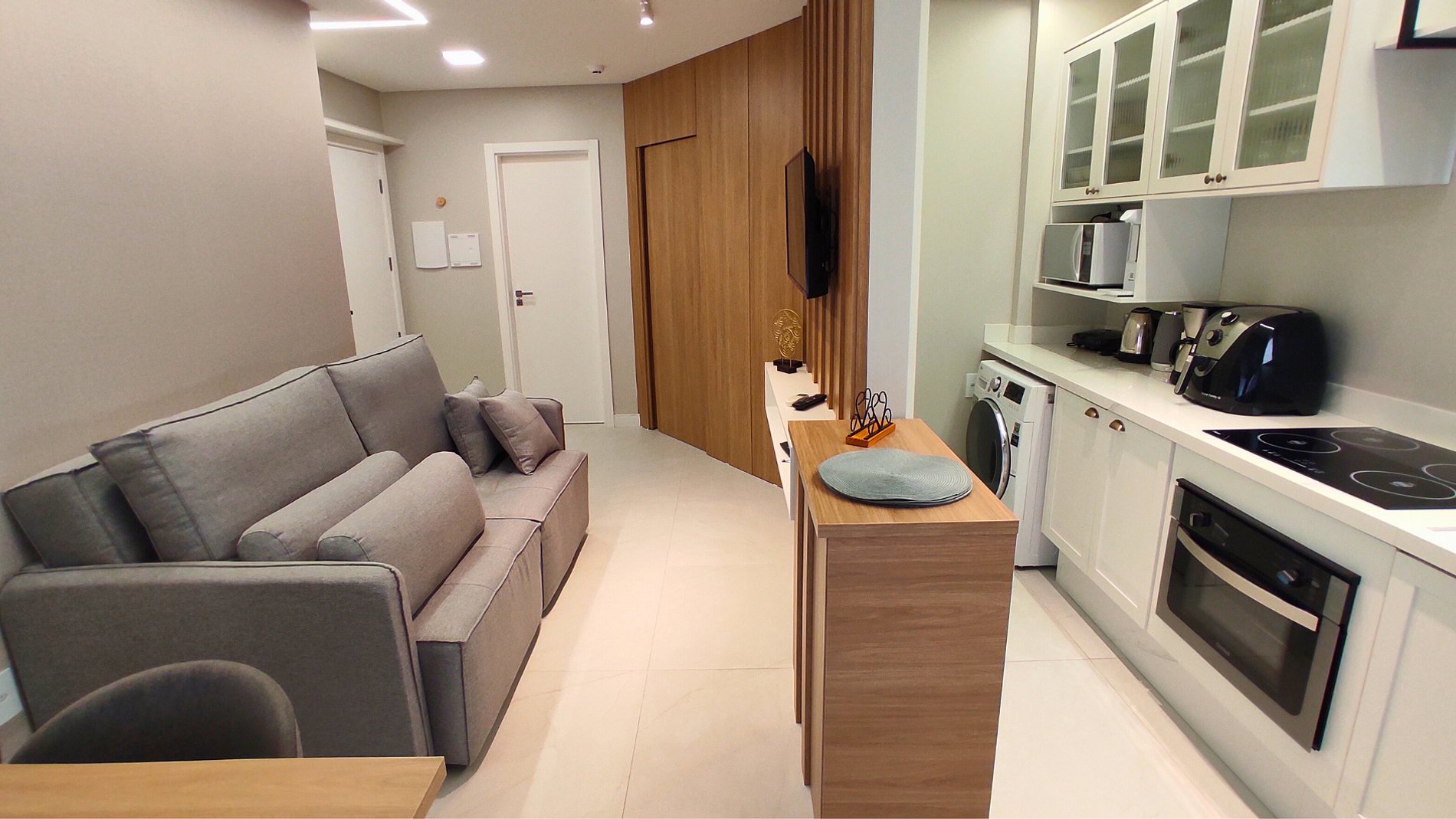 Apartamento moderno e aconchegante localizado no Residencial Sunny Flats aproximadamente 400 metros da praia de Bombas em Bombinhas. O apartamento tem capacidade para até 03 pessoas. Possui uma bela área externa com piscina no terraço, área gourmet, praça de fogo, sala de jogos e espaço kids.